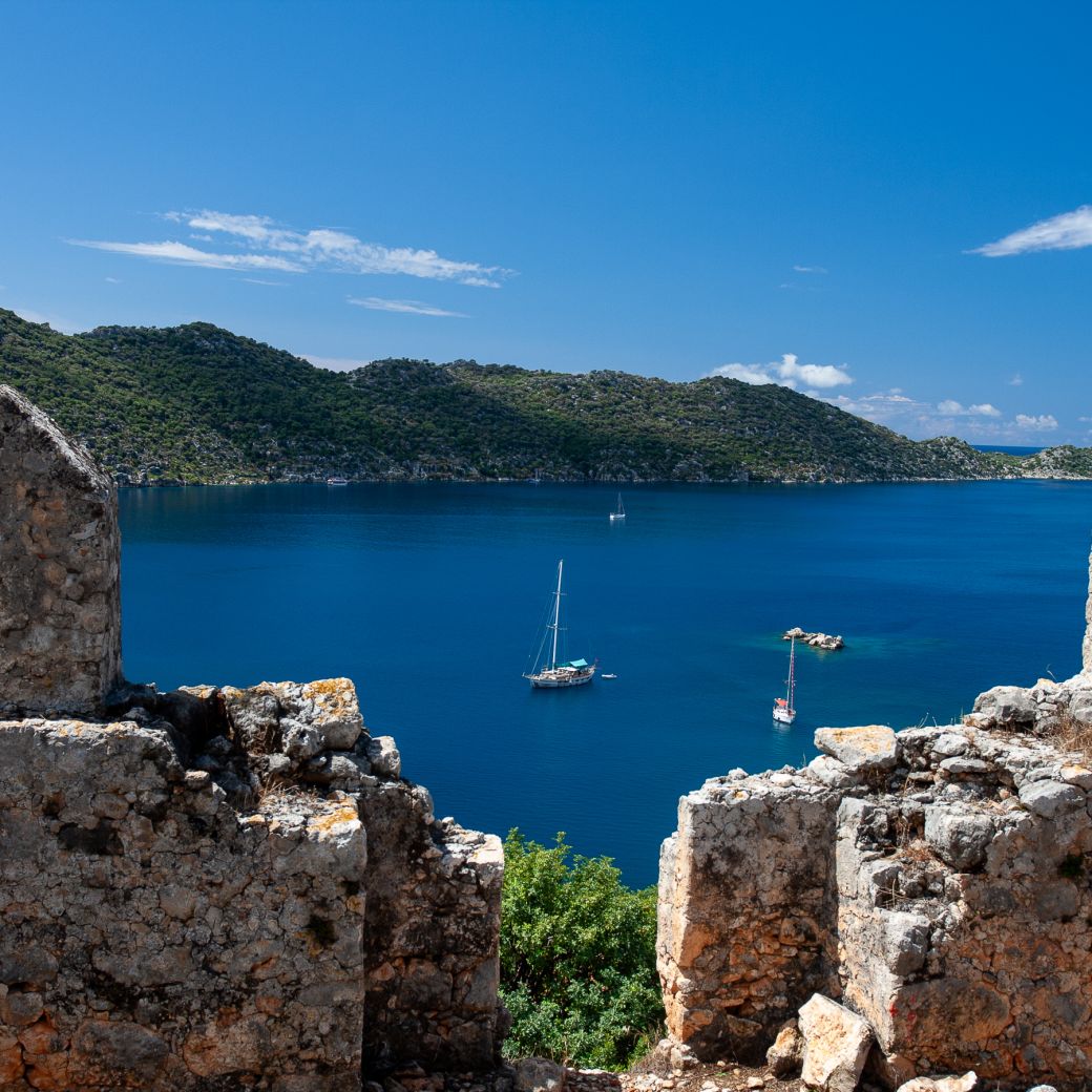 A 30 minute drive takes you to the small village of Kılıçlı to start the hike. The ruins of ancient Apollonia are also located nearby. For a place in the middle of nowhere, this forgotten site has a lot to offer. The stony path starts descending through low vegetation before coming upon the sarcophagi of Aperlae. The ancient economy of this town was driven by the valuable Tyrian dye derived from a type of marine snail. Your efforts on the hike are rewarded with a nice 2-3 hr boat trip over the Kekova sound with its turquoise waters. Having seen the sunken city, the boat trip ends in Simena, one of the most picturesque villages along the Turkish coast.