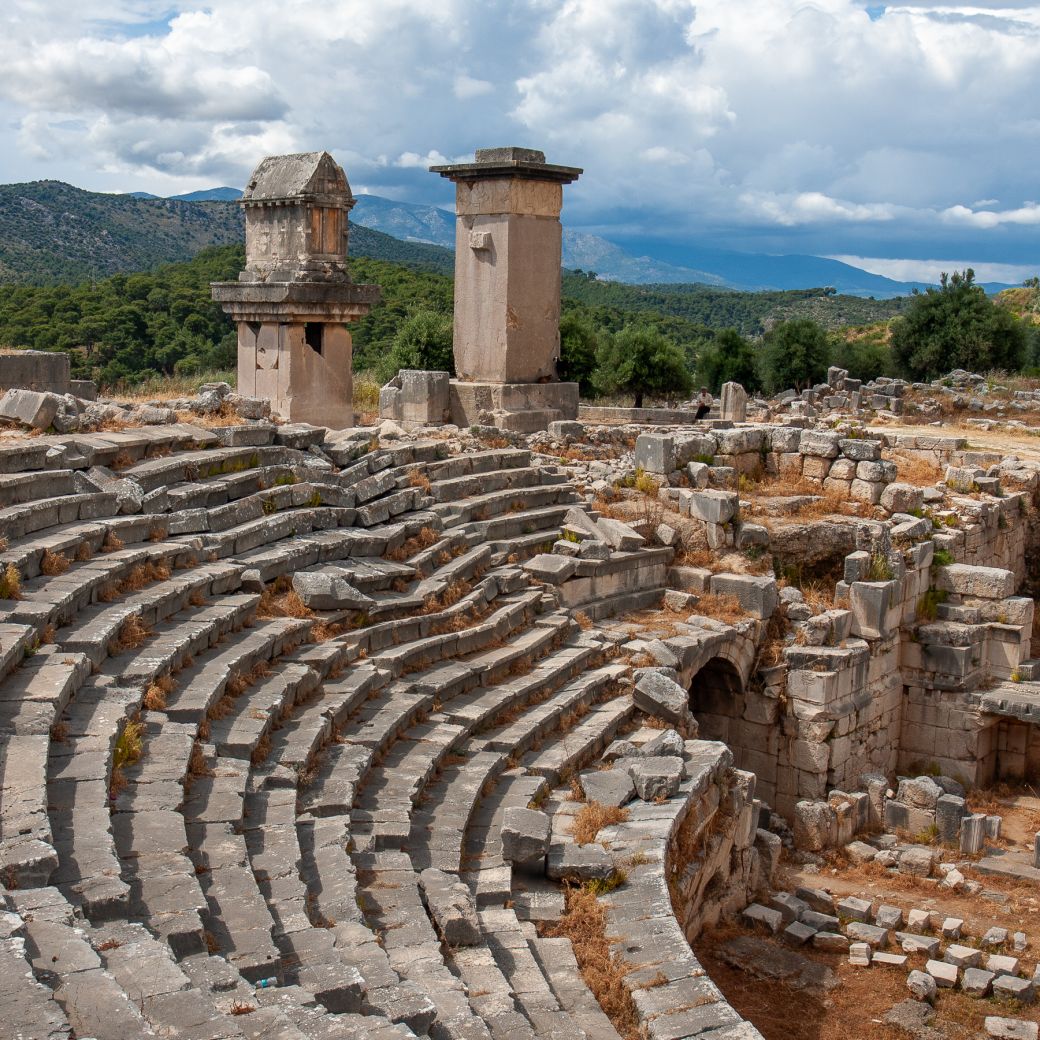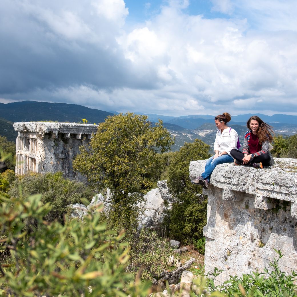 A great mix of natural diversity from barren hills to dense forests, from villages to sweeping views of the coast. The first half of the route goes uphill, undulates, then starts descending towards Yediburunlar village. The transfer then first takes you to Xanthos Ruins then to Gelemiş village.
