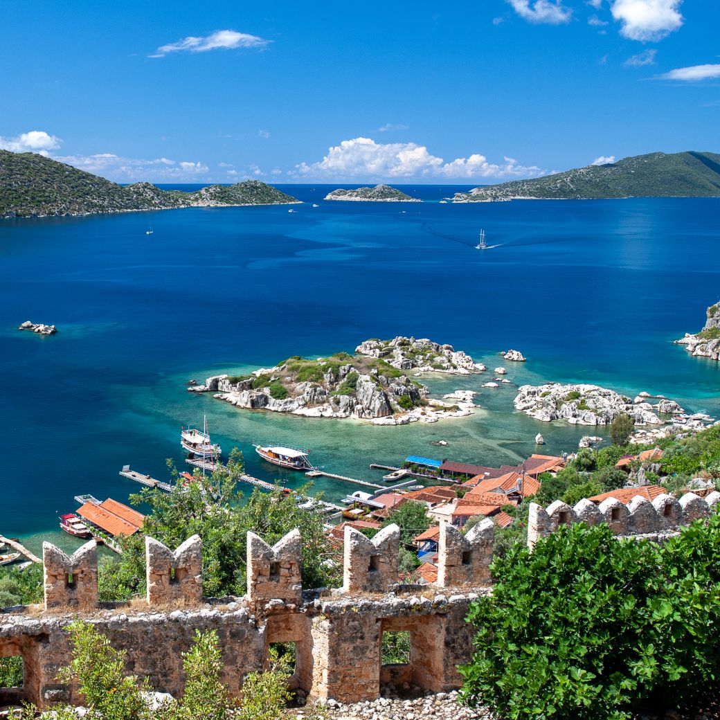 The route starts from Fethiye’s boat marina and ancient theatre ascending past ancient Lycian tombs. The route continues on an old Greek cobbled road through the pines before descending into the fertile Kayaköy valley. After exploring the ghost town, continue on to the Blue Lagoon at Oludeniz, ending your hike with a swim by your hotel.